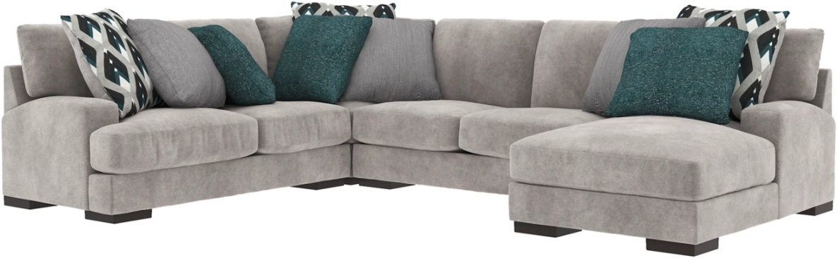 Includes 4 pieces: right-arm facing corner chaise, left-arm facing loveseat, armless loveseat and wedge