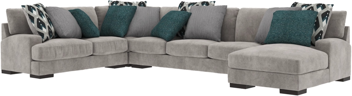 Includes 4 pieces: right-arm facing corner chaise, left-arm facing loveseat, armless sofa and wedge