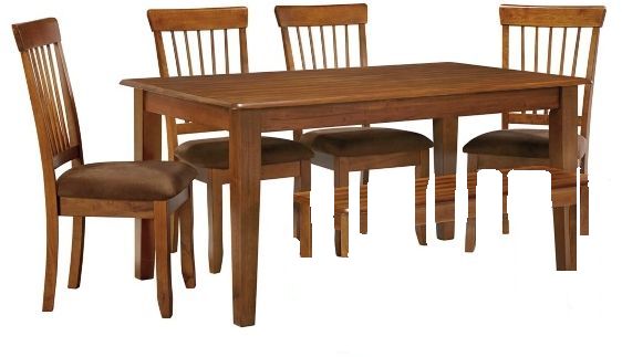 Serve up a simply striking look with this dining room table set. Clean-lined, farmhouse-inspired table is paired with four spindle-back chairs with cushioned seats wrapped in an easy-care microfiber fabric. Rustic, hand-applied finish is a feast for the eyes.Read More