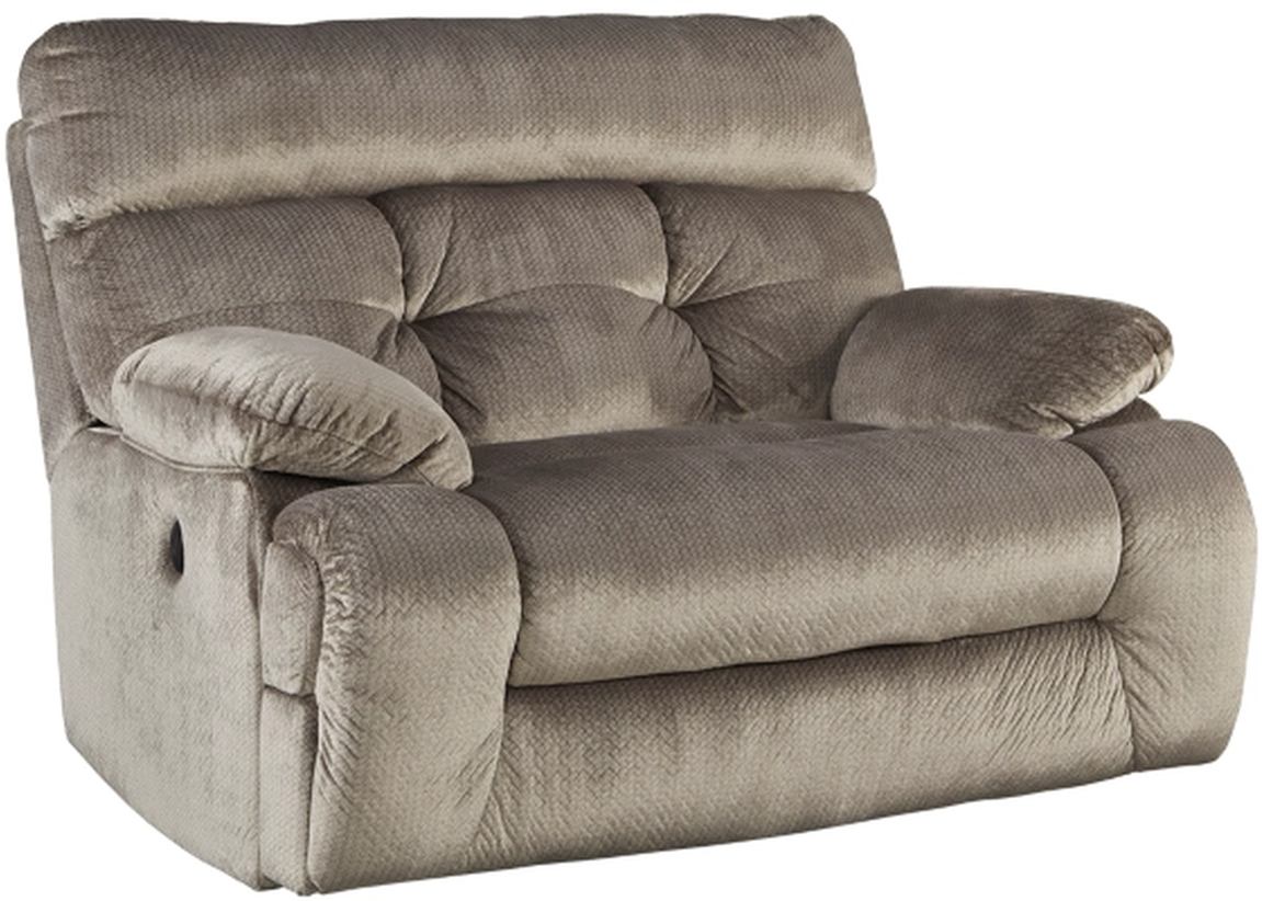 A large scale means large comfort with this recliner. Wonderfully wide seat is upholstered in a textural, cottony soft fabric. Recline as far back as you please on pillowy arms and headrest. Bustle back tufting adds the right amount of casually cool style.Read More