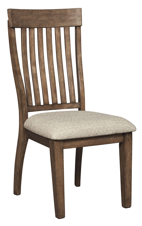 Ashley® Colestad Dining Upholstered Side Chair with burnished natural wood finish and fabric cushion.Read More