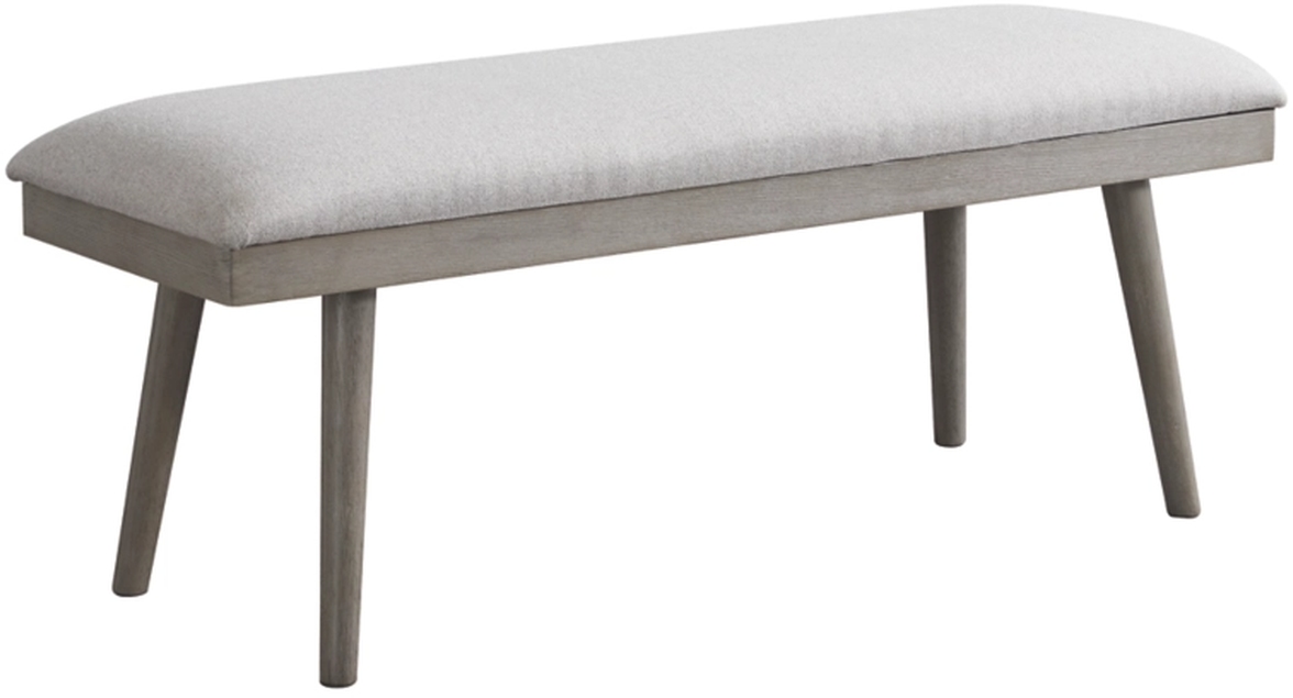 This dining bench turns heads with its simplicity. Made with solid wood, it has a wire-brushed grayish brown finish that's beautifully neutral. The bench's cushioned seat with textured upholstery offers comfort and visual appeal.Read More