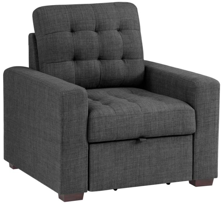 The versatility and functionality of the McCafferty Collection goes beyond that of a traditional sofa. Covered in dark gray fabric, the transitional profile of this seating group is complemented by stitch tufting and track-style arms. The chair features a single seat with pull-out ottoman, conveniently providing built-in leg extension.Read More