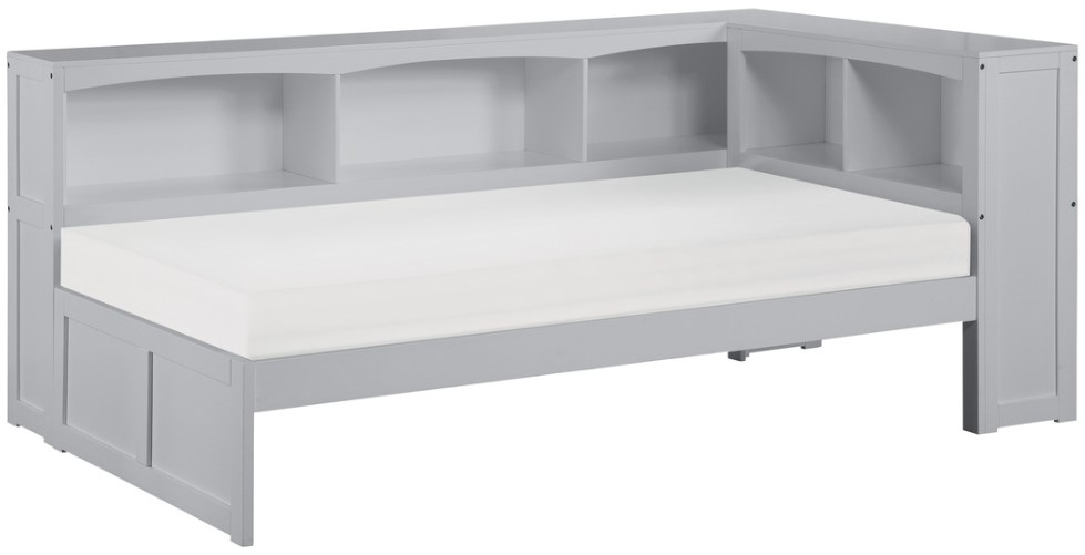 Maximizing sleep space is achieved with the stylish Orion Collection. This transitional twin corner bookcase bed is featured in a gray finish making it an appropriate choice for a number of youth bedroom settings. The bookcase headboard allows for convenient storage within arm’s reach.Read More
