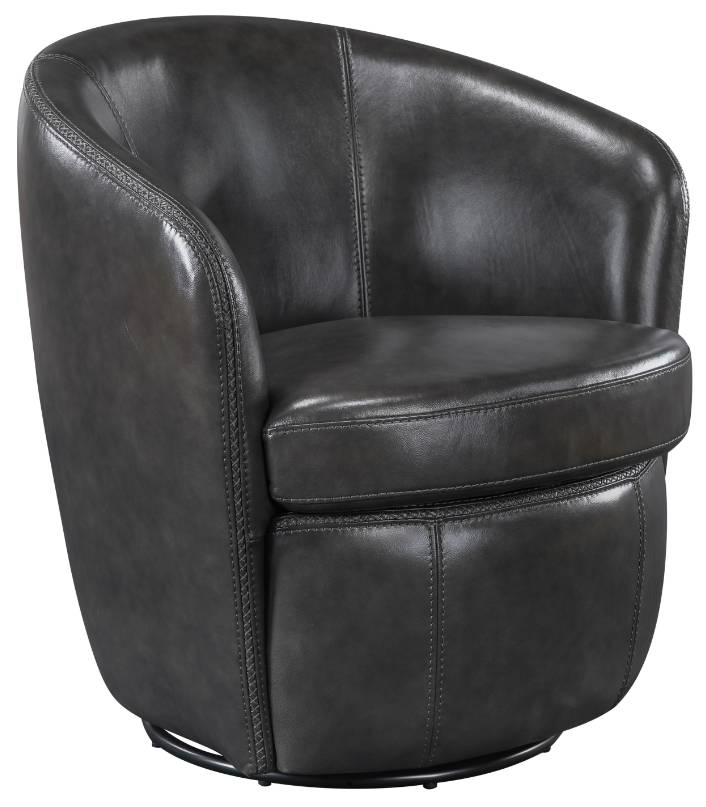 Experience the epitome of luxury and functionality with this top grain leather swivel barrel chair. Featuring a sturdy solid wood and plywood frame with a smooth metal swivel base, this chair offers both durability and effortless movement.Read More