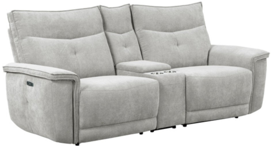 Providing ample seating in modern form the Tesoro collection. The classic love seat is book-ended by USB port enhanced end power recliners allowing for maximum versatility when planning the layout of your living room. Mist gray fabric provides a neutral palette for your decorative preferences.Read More
