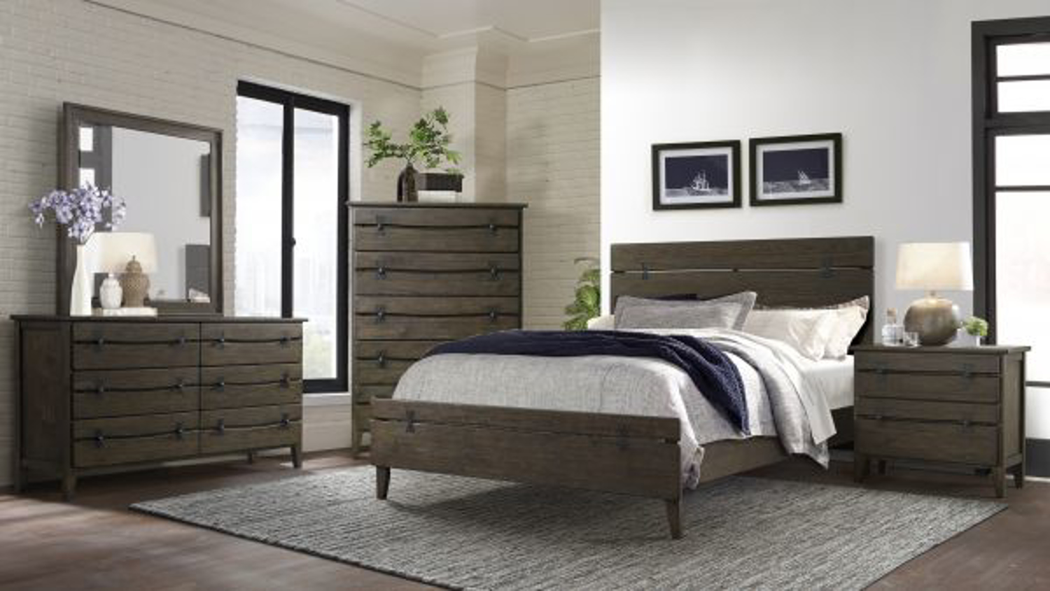 Includes bed (headboard, footboard and rails), dresser, mirror and one nightstand.Read More