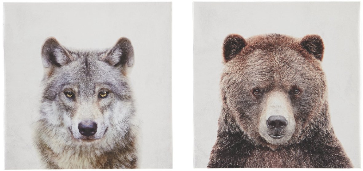 The hyper-realistic portraits of a grey wolf and grizzly bear on these Albert wall art panels look like they might leap out of the wall! Let your imagination run wild with these twin symbols of the great outdoors.